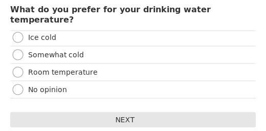 Price Comparing: Those who prefer room temperature water are more than four times as likely as those who prefer cold water to say that they never price compare when deciding to buy a product  (17% vs 4%).